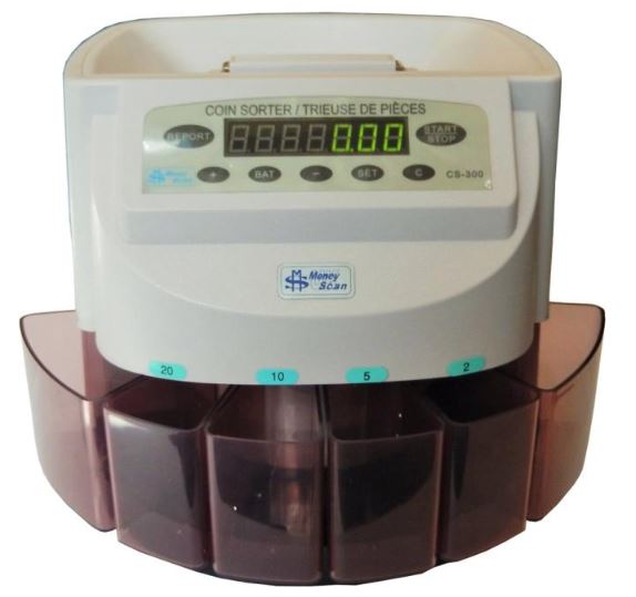 Počítačka a třídička mincí CS-300 CZK ve verzi na české koruny nebo CS-300 E ve verzi pro euro. Šetří čas a práci. Pomáhá eliminovat ztráty způsobené lidskou chybou. Počítá a současně třídí, přičítá a