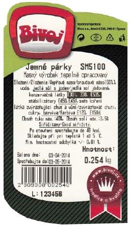 informace na etiketě: hmotnost, jednotková a celková cena, datum balení, užití, název a složení zboží, čárový kód, logo, obrázek